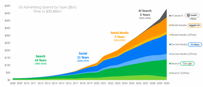 L’intelligence artificielle redéfinit le marketing digital Depuis vingt ans, les marques surfent sur des vagues successives : la recherche (Google), la publicité sociale (Facebook), le retail media (Amazon). Aujourd’hui, une quatrième vague s’impose, encore plus rapide et radicale : l’IA conversationnelle. Vous souhaitez préparer votre marque à cette nouvelle donne ? Une accélération fulgurante :…